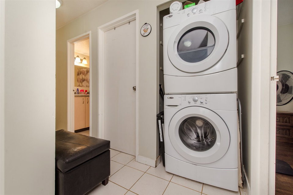 Investor Alert!! Large 2 bedroom 1 bathroom condo. Centrally located within walking distance to down town Abbotsford, shopping, easy freeway access. Huge patio surrounded by park like trees on the quiet side of the building. Insuite laundry, underground parking, all rentals okay, 2 pets okay. Perfect starter home or a great investment. Call today.